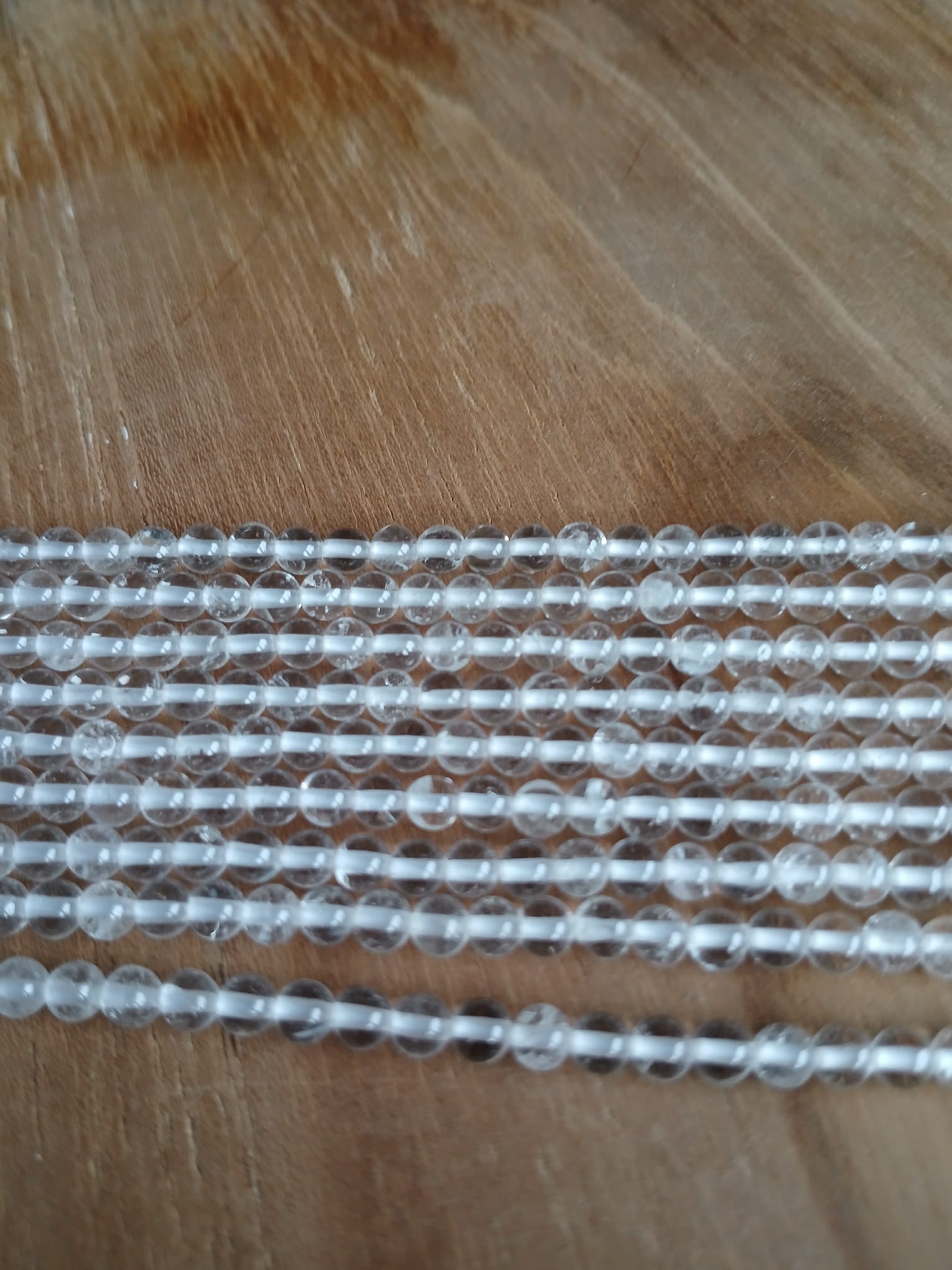 Edelsteenkralen van bergkristal 3 mm, rond. Streng ca. 39 cm, 100% natuurlijk.
