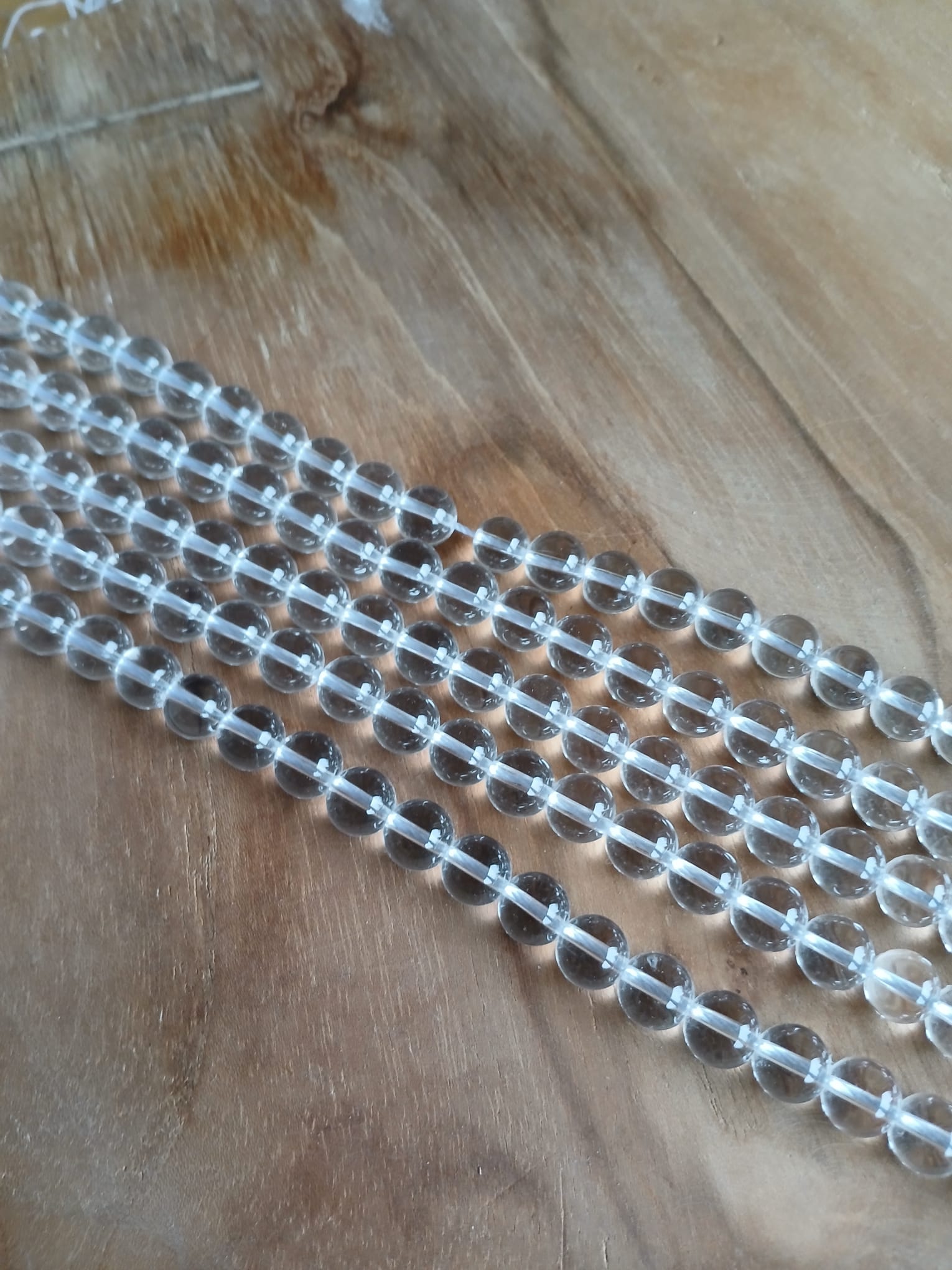 Edelsteenkralen van bergkristal 8 mm rond. Streng ca. 38 cm, ca 47 kralen, 100% natuurlijk